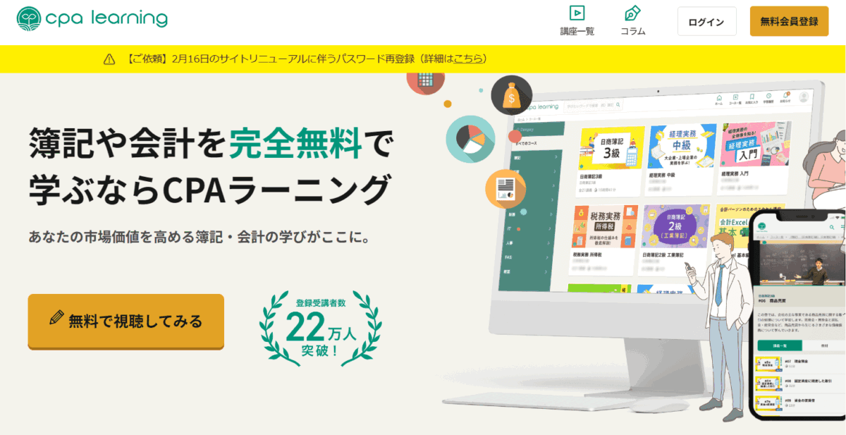 CPAラーニングは、無料で簿記を学べるサービスとして注目されています。